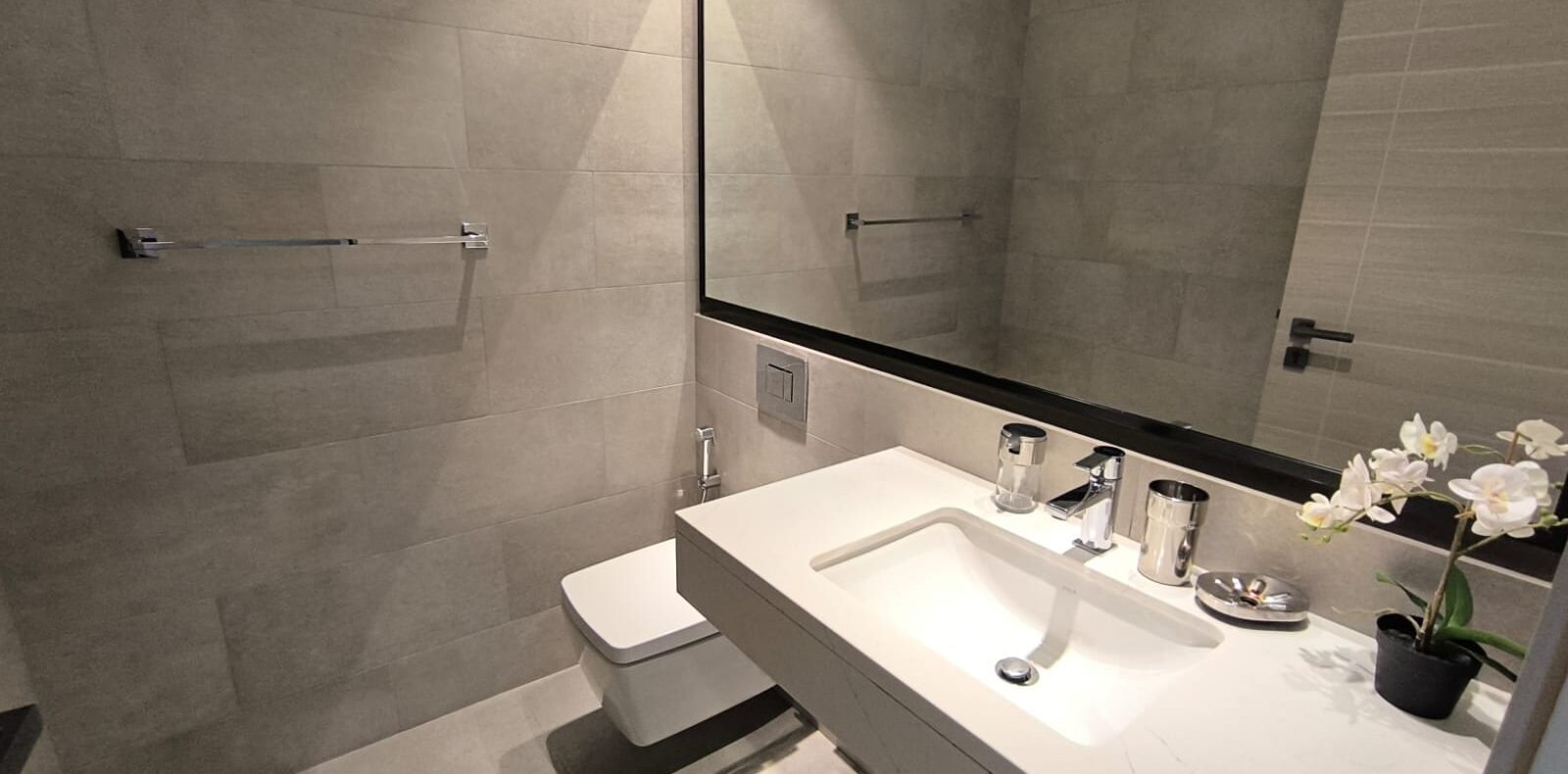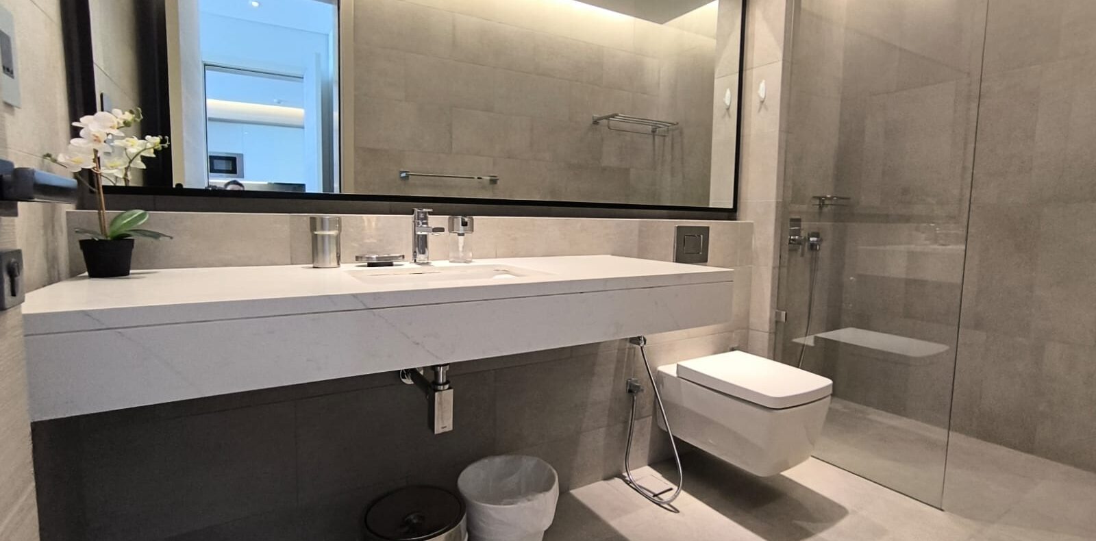 - 1 Modern bathroom adjacent to the bedroom.