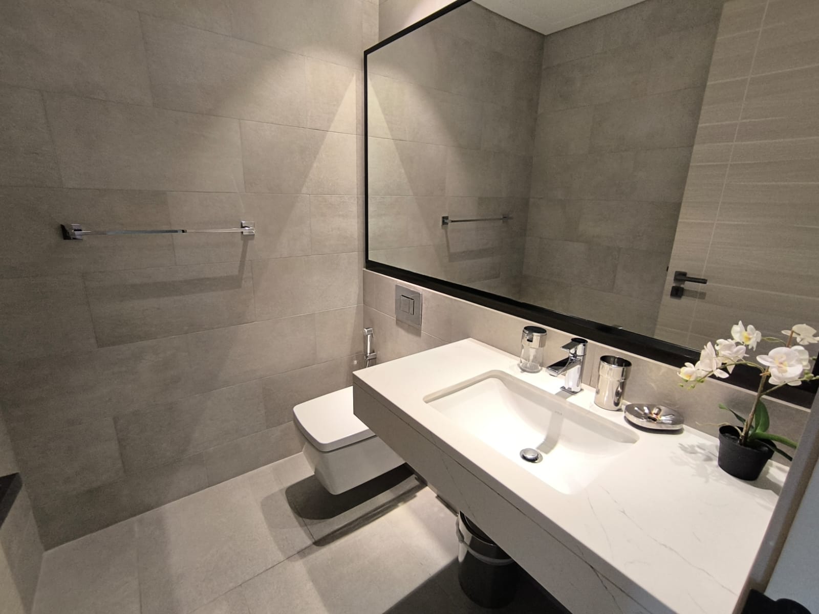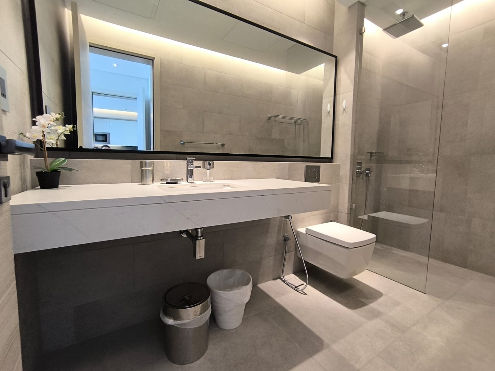 - 1 Modern bathroom adjacent to the bedroom.